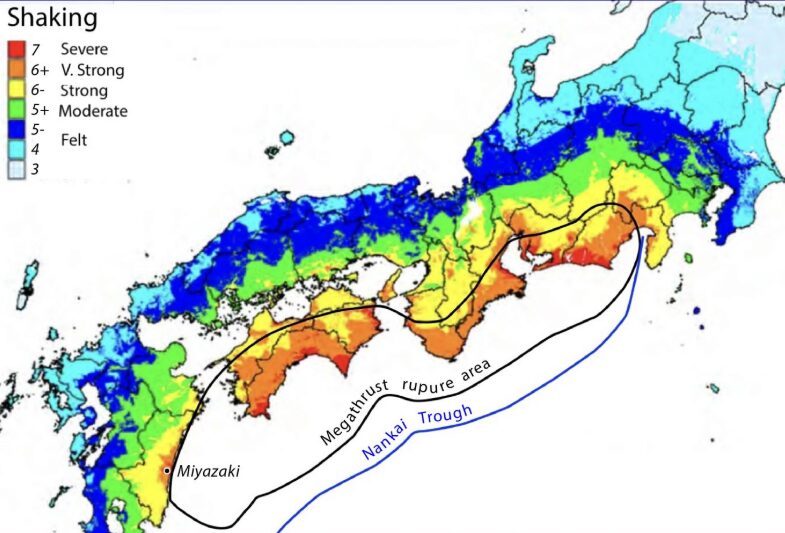 A Nankai Trough earthquake is a powerful, recurring earthquake predicted to occur along the Nankai Trough, an ocean-floor trench off the coast of Japan.